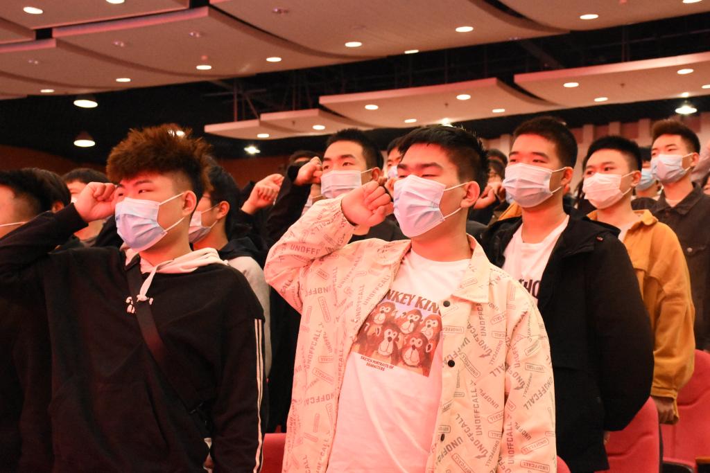 团总支书记李明带领全体新生进行了庄严的入学宣誓,新生们铿锵有力的声音响彻会场,表达了做合格大学生的坚定决心。老生代表乔新满、新生代表李悦分别发言。