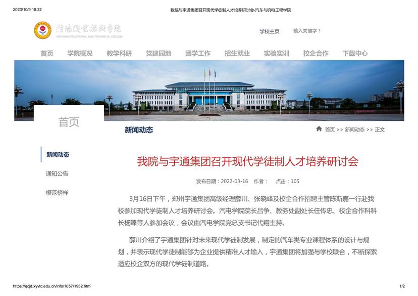 2.1.4 信阳职业技术学院现代学徒制教学质量监控体系及运行规定