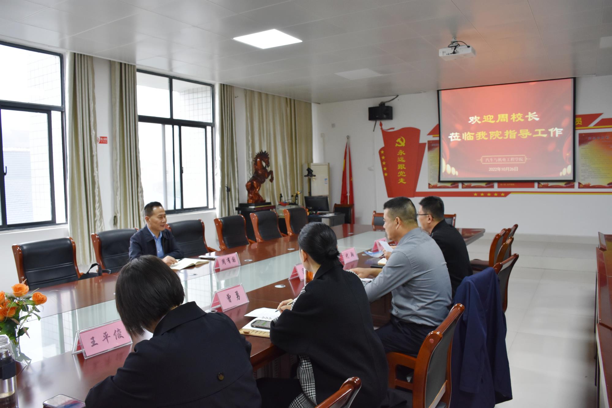 星空体育平台·(中国)官方网站党总支书记代翔汇报了学院基本情况、党建和学生工作,院长吕争汇报了学院专业建设、实训室建设、校企合作等发展中面临的问题及下一步工作思路、建议。